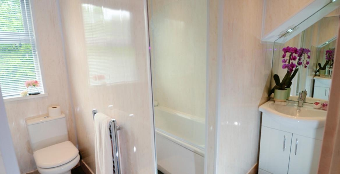 The generous, modern bathroom is finished to a high standard and includes a shower-over-bath, wash basin, and WC.
