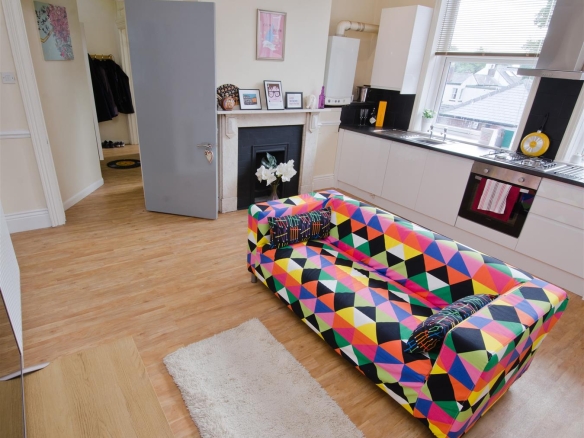 The flat boasts a contemporary, fully fitted kitchen complete with all the modern appliances you could wish for, making cooking and entertaining easy. The bright and airy living room features a lovely bay window and a flat-screen TV, perfect for relaxing after a long day of studying.